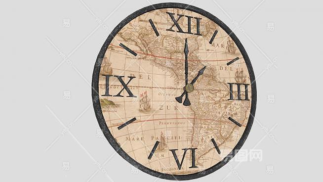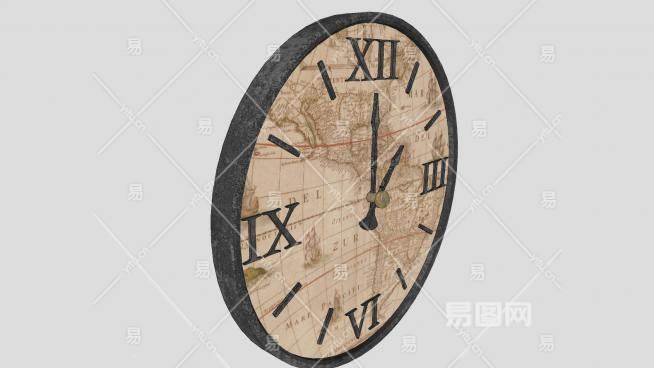 美洲地图复古钟表SU模型下载_sketchup草图大师SKP模型