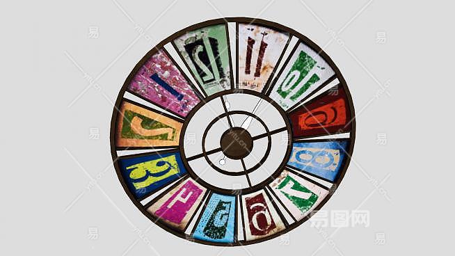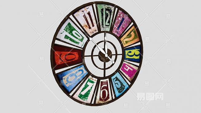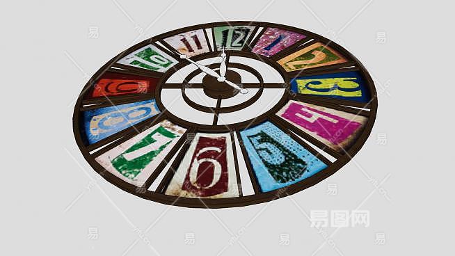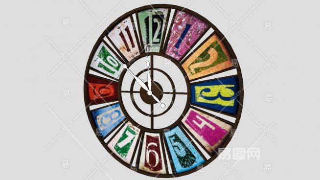 创意数字彩色摇轮盘钟表SU模型下载_sketchup草图大师SKP模型