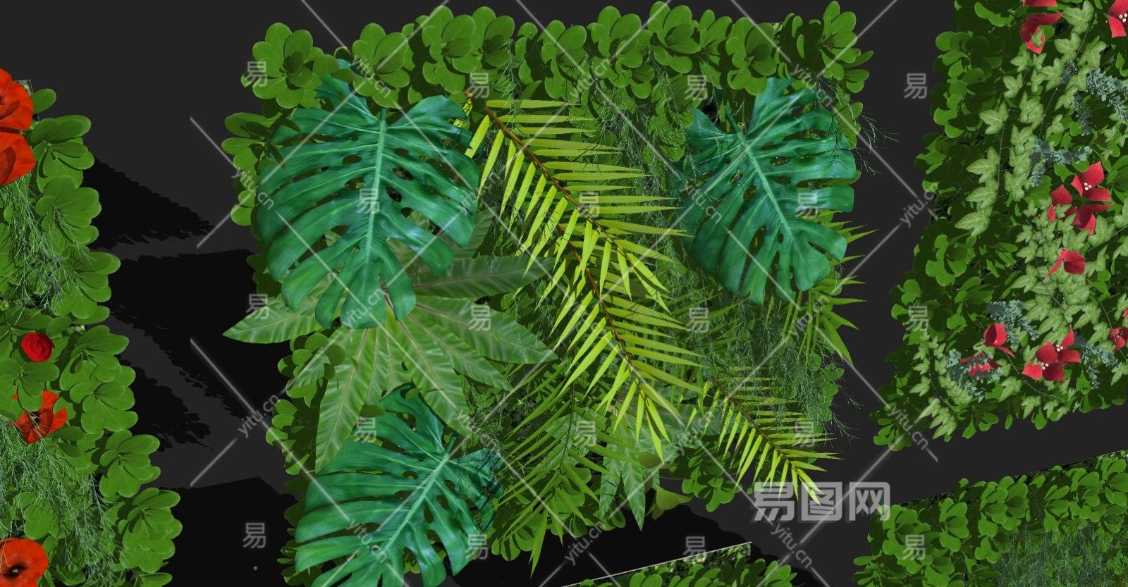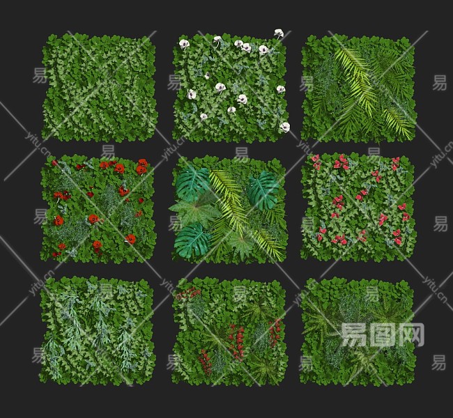 现代植物墙绿植墙组合灌木花草墙饰