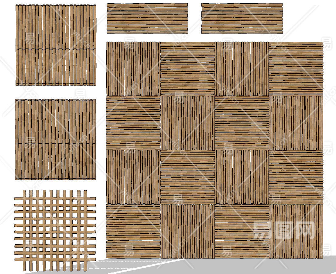 自色风竹子竹架装饰背景su草图模型下载