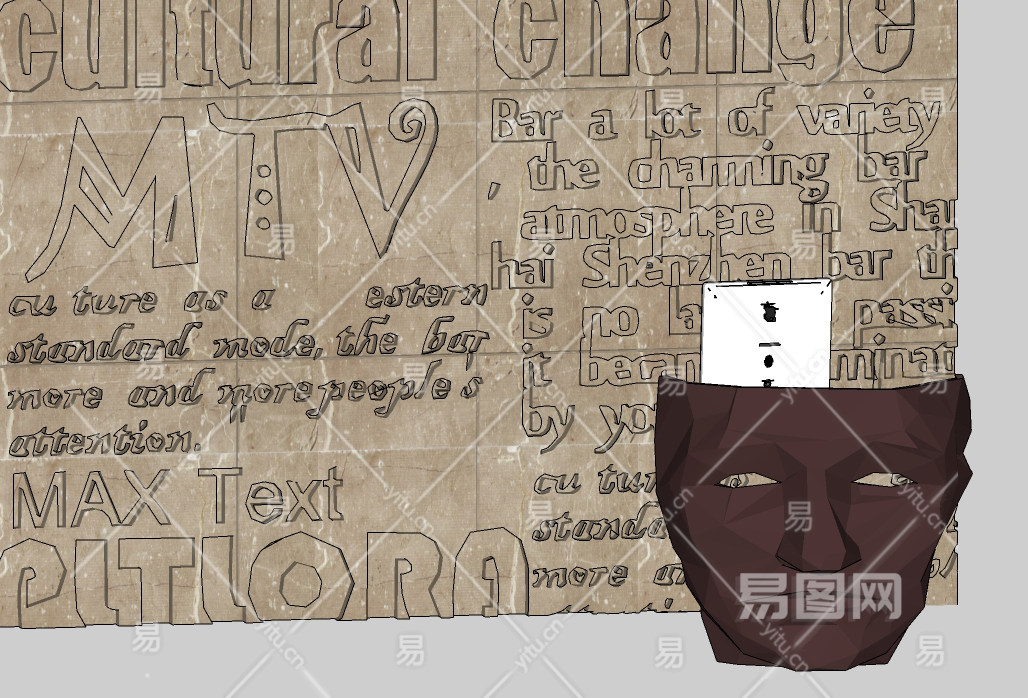 抽象人头面具,服务台,接待台,雕刻背景墙su草图模型下载