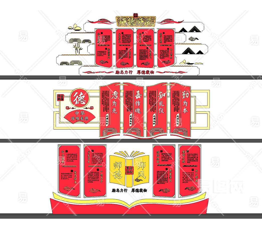 现代校园文化墙宣传栏su草图模型下载