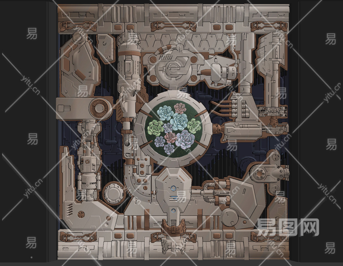 工业风机械蒸汽朋克背景墙su草图模型下载
