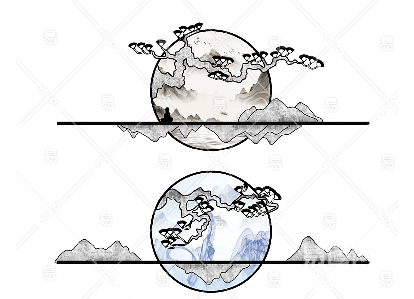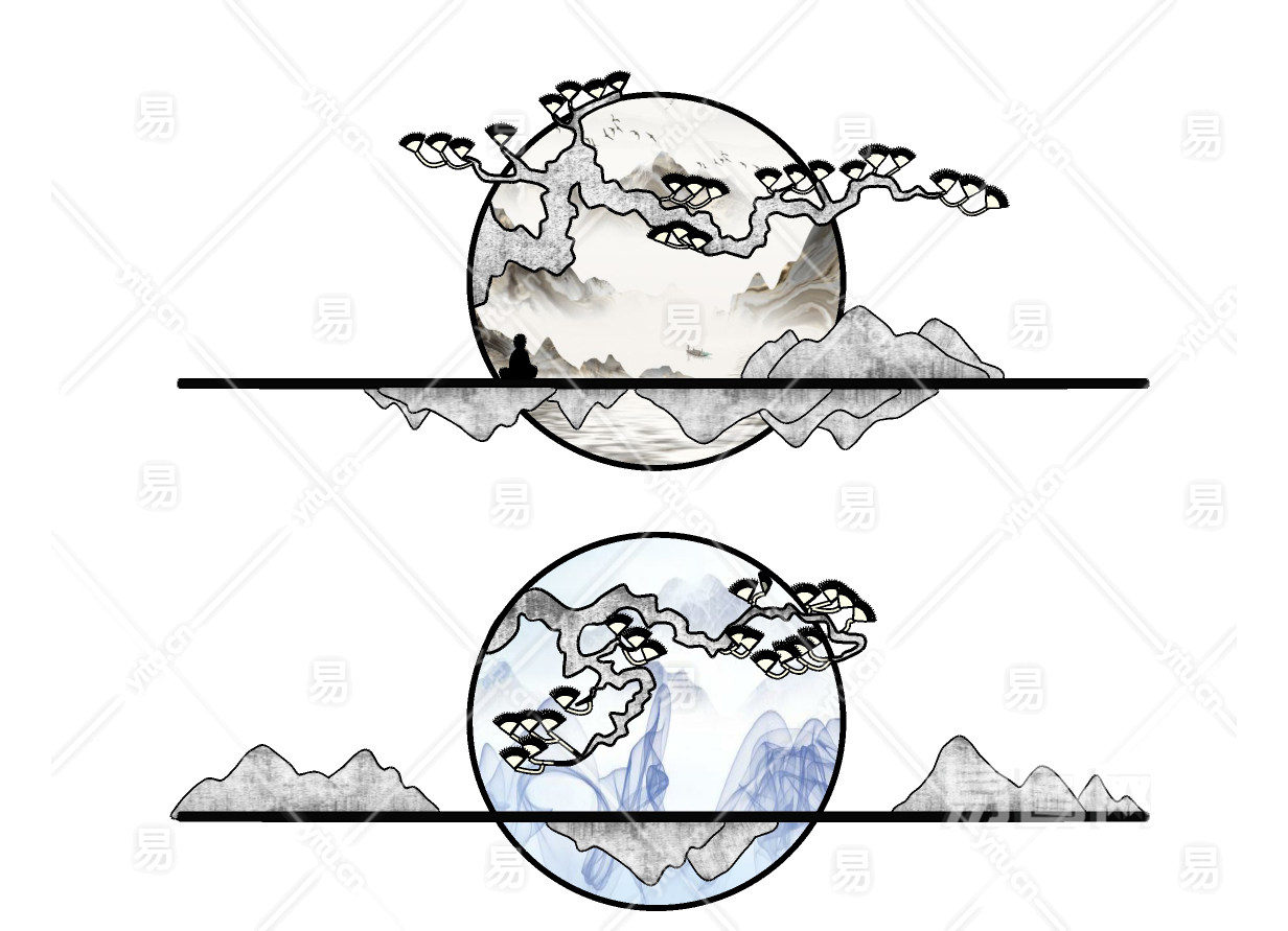 新中式金属墙饰山脉挂件,墙饰,挂饰,立体画su草图模型下载