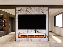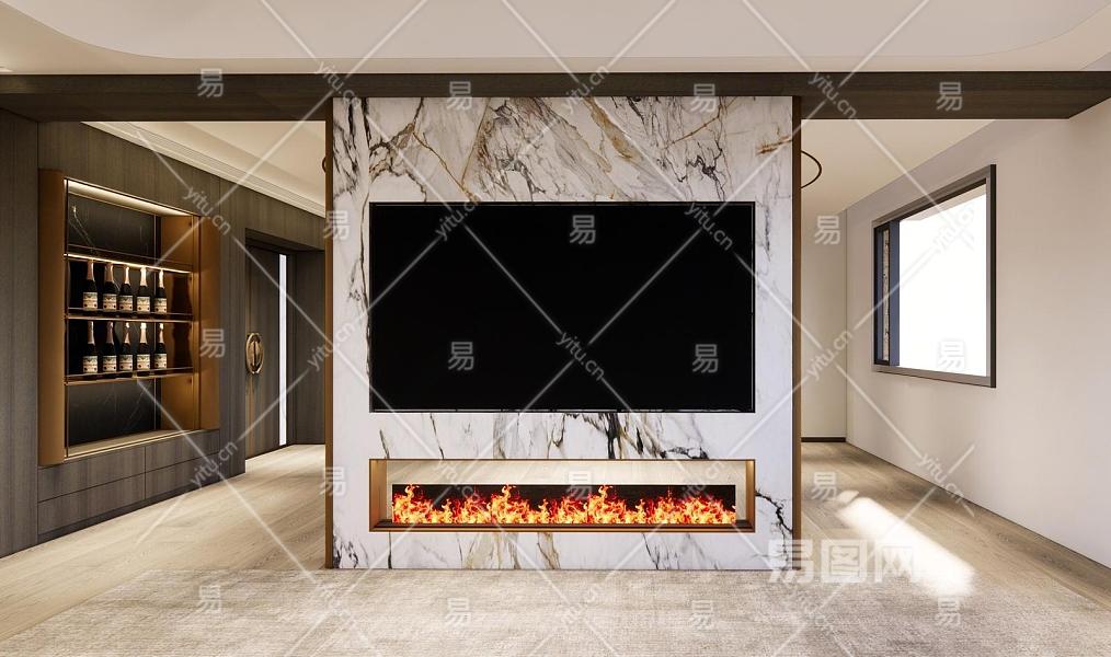 现代轻奢石材电视背景隔断墙 酒精壁炉 装饰壁炉 酒柜展示 伴手礼柜