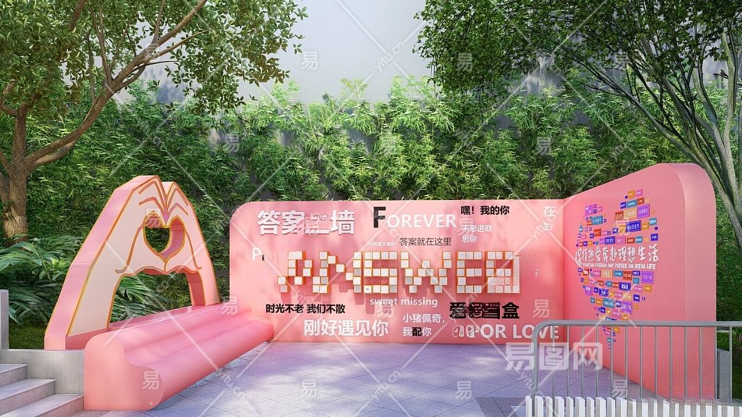 现代网红打卡墙 答案墙 拍照点情侣爱情景墙 文化景墙 直线