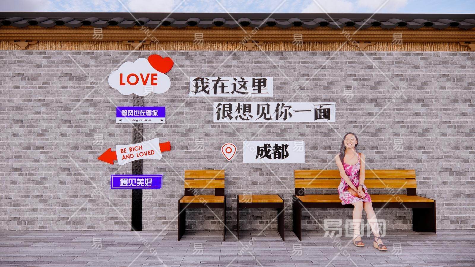 现代网红打卡景墙 城市文化小品 艺术景观墙 我在这里很想你 路牌指示牌 直线 庭院景墙
