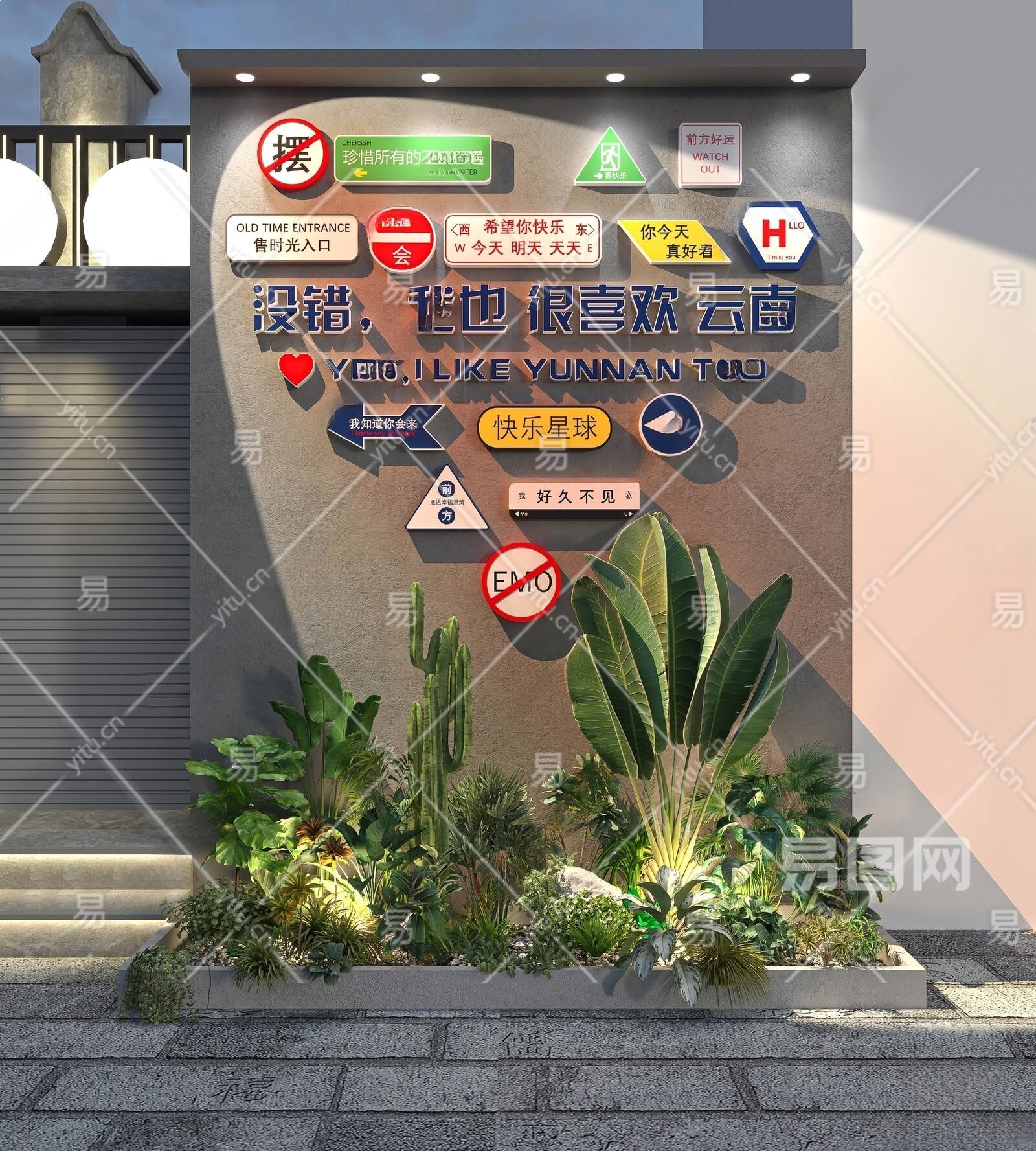 现代网红景墙 打卡墙 打卡墙设计 文化景墙 直线