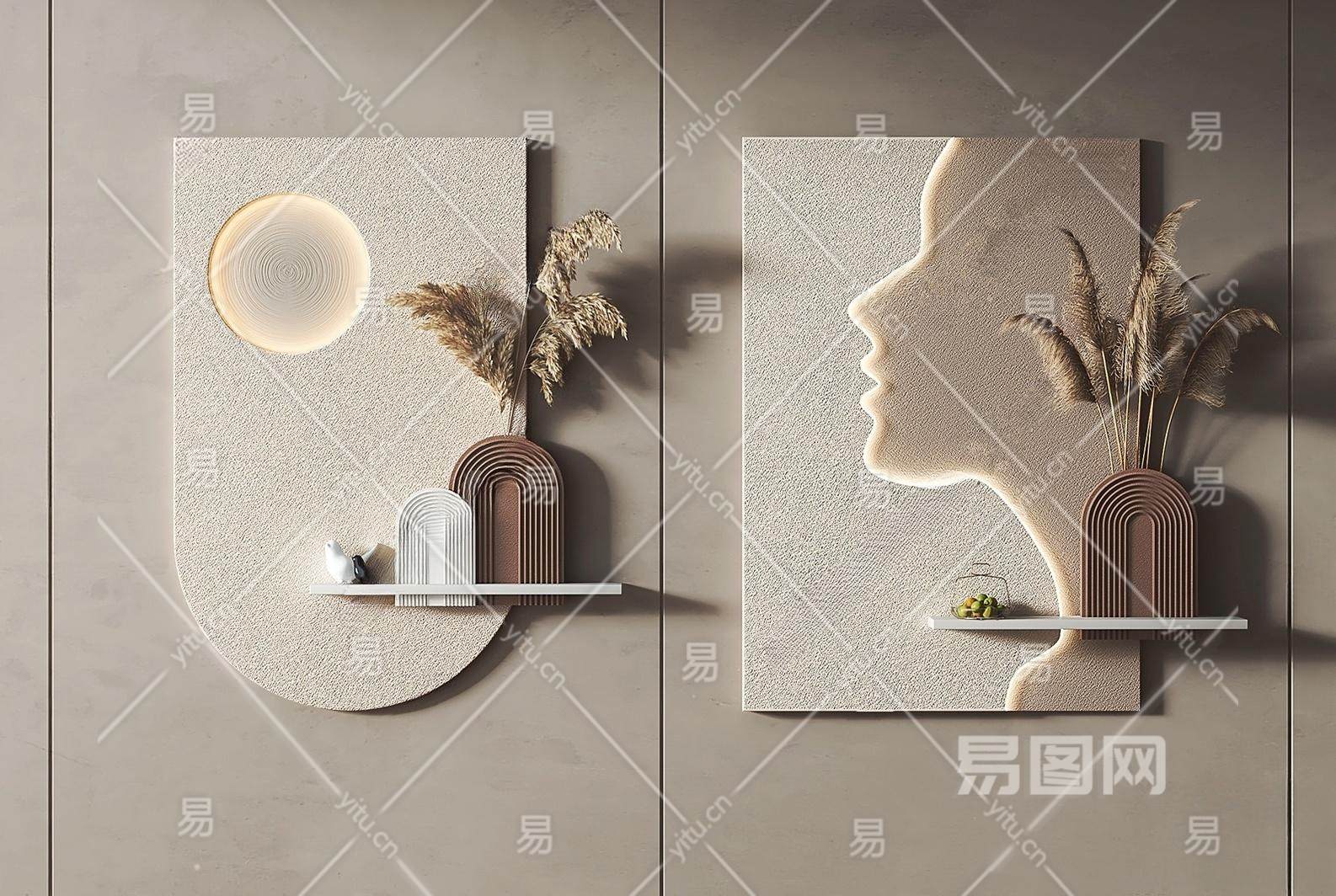 04侘寂风立体墙饰挂饰,立体墙饰挂件摆件su模型