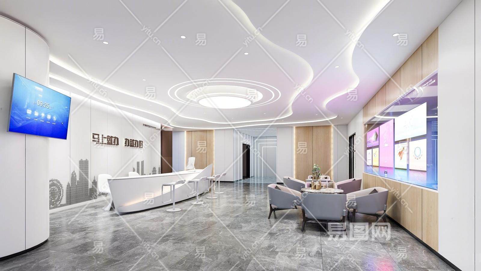 现代公司大堂 企业大厅 宣传大厅 透明屏 公司前台 前台背景墙