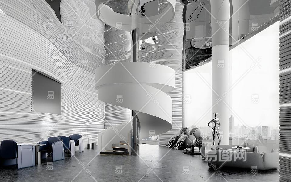 现代科技感公司大堂 商业空间大堂 楼梯