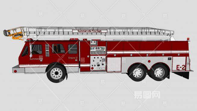 云梯消防车车辆SU模型下载_sketchup草图大师SKP模型