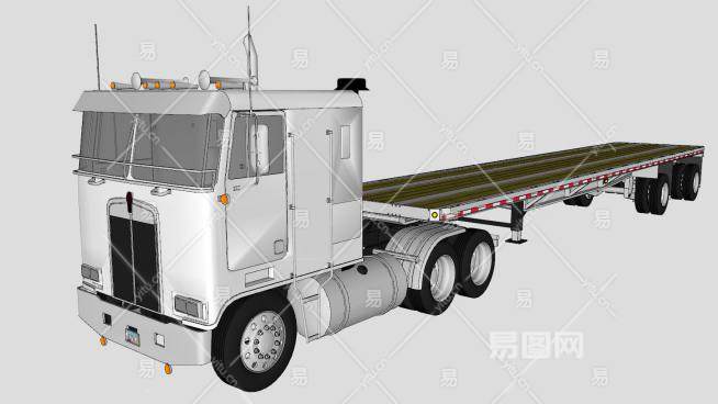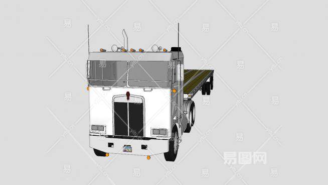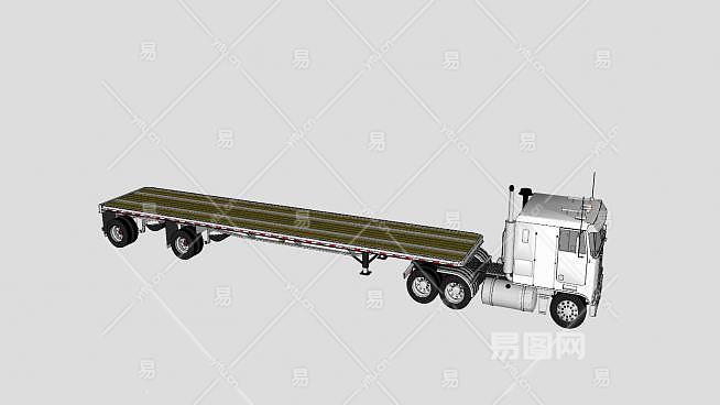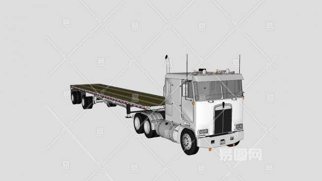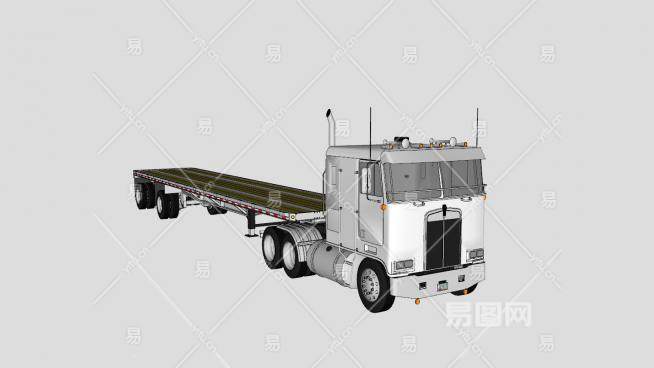 肯沃斯K-100平板拖车SU模型下载_sketchup草图大师SKP模型