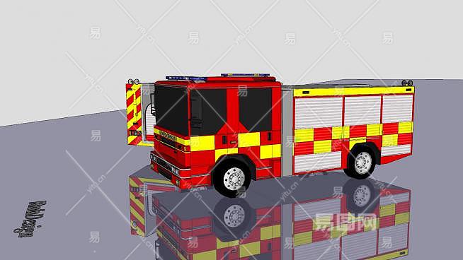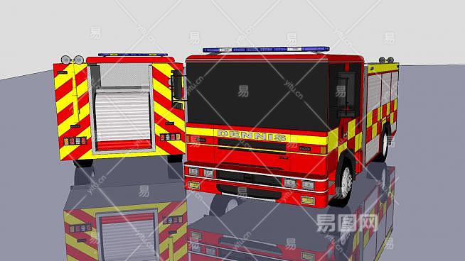 丹尼斯消防卡车SU模型下载_sketchup草图大师SKP模型