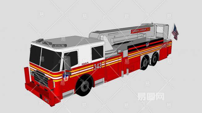 纽约消防局消防车SU模型下载_sketchup草图大师SKP模型