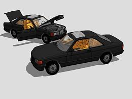 黑色奔驰W126汽车SU模型下载_sketchup草图大师SKP模型