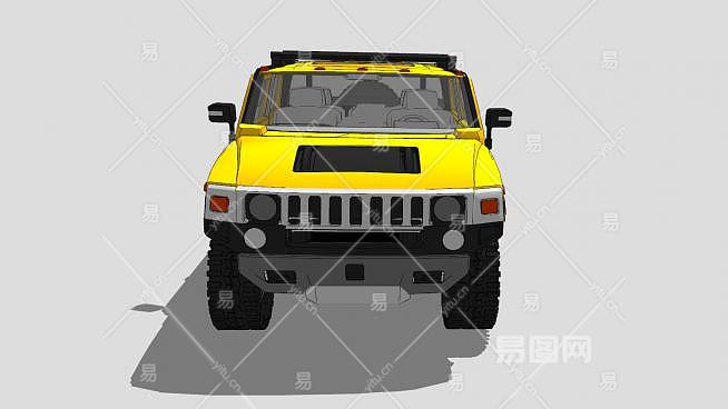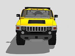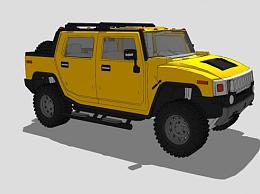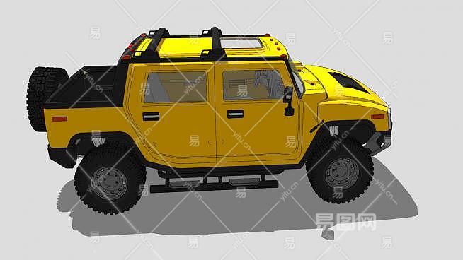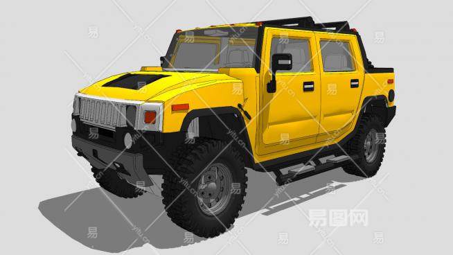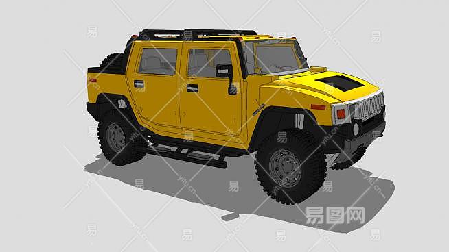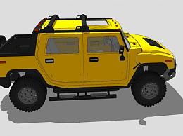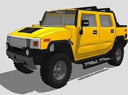 黄色悍马H2SUT汽车SU模型下载_sketchup草图大师SKP模型