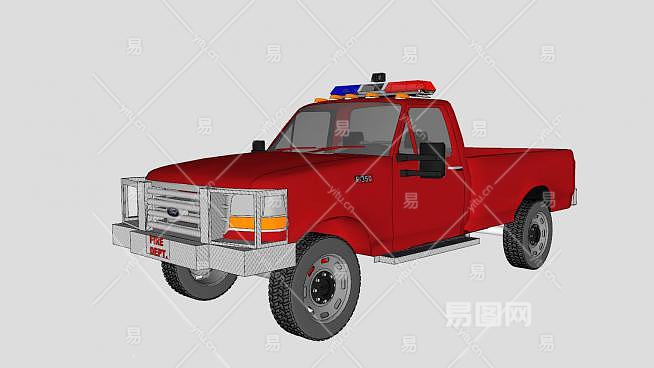 老福特消防车SU模型下载_sketchup草图大师SKP模型