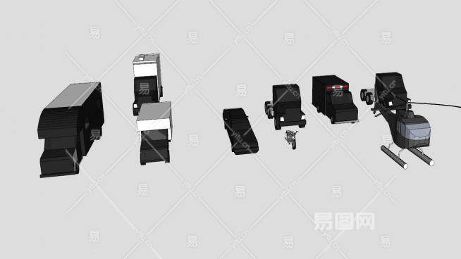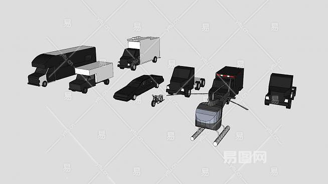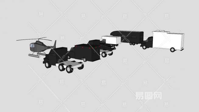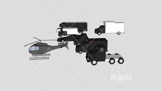 卡车和直升机SU模型下载_sketchup草图大师SKP模型