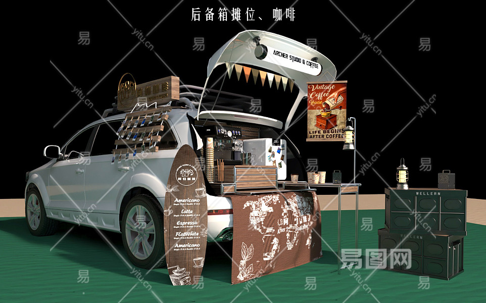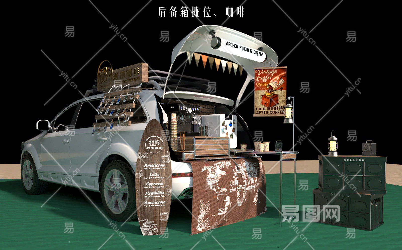 汽车后备箱咖啡 后备箱集市摊位 网红市集摊位 夜市摆摊 氛围户外咖啡