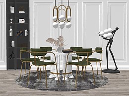 现代轻奢饭桌椅组合模型