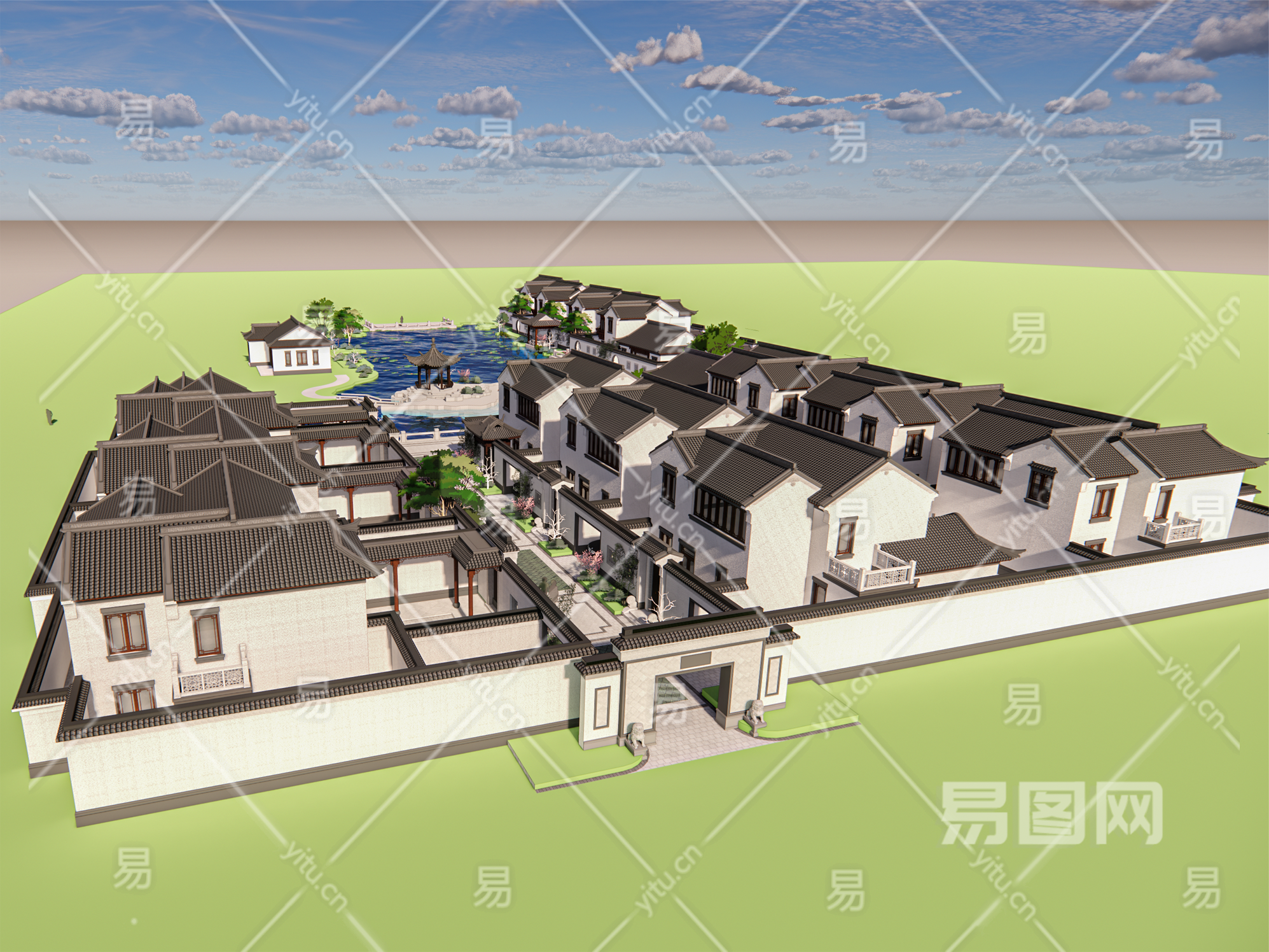 中式别墅区模型
