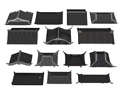 中式建筑构件坡屋顶古建构件飞檐飞脊瓦片马头墙歇山顶人字顶屋檐顶传统建筑构件