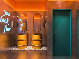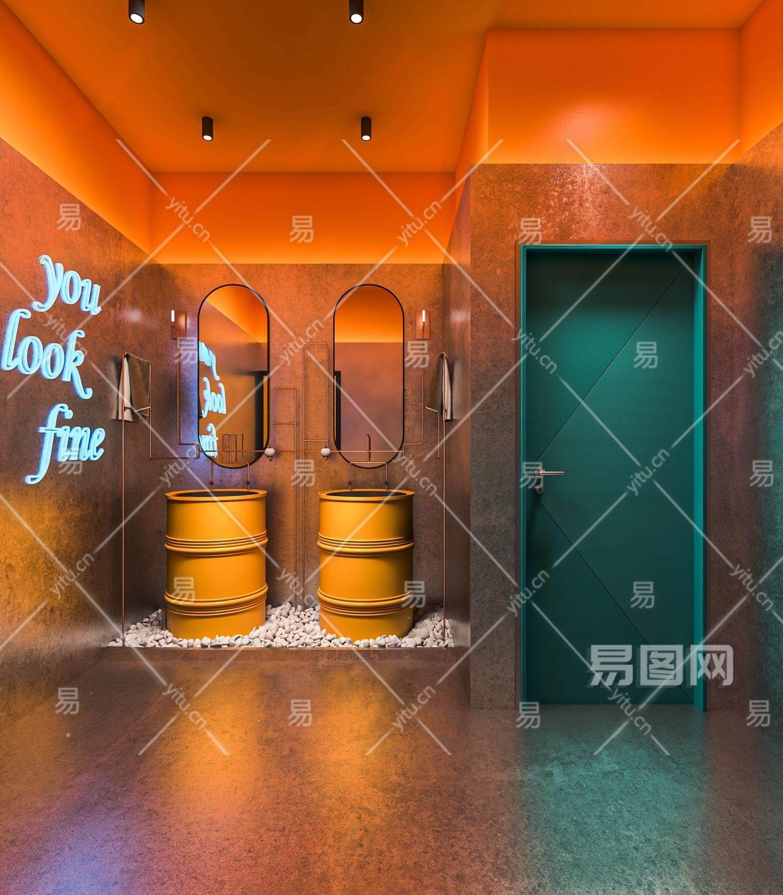 现代公共卫生间 酒店卫生间 镜子 洗手台 卫生间门 双人洗手台