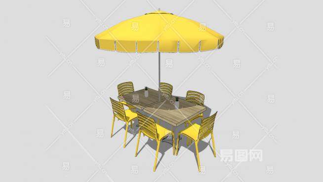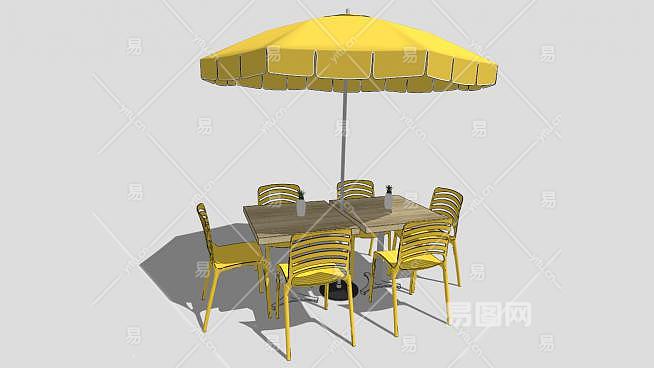 简约户外伞桌椅SU模型下载_sketchup草图大师SKP模型