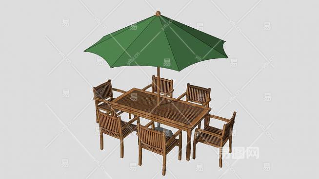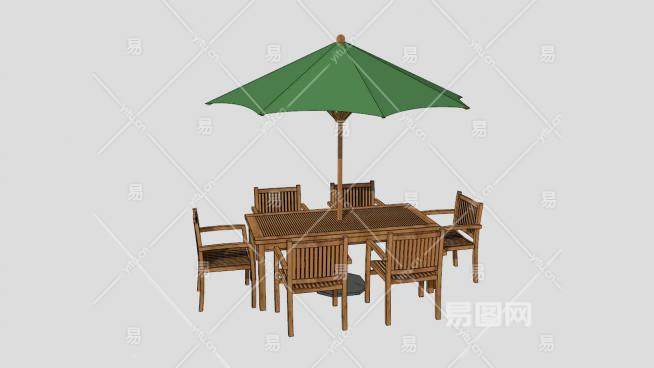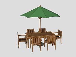 景区休闲户外木质伞座椅SU模型下载_sketchup草图大师SKP模型