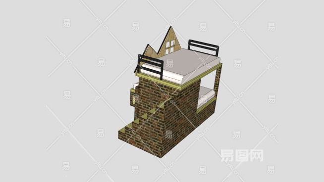 砖石楼梯双层床SU模型下载_sketchup草图大师SKP模型