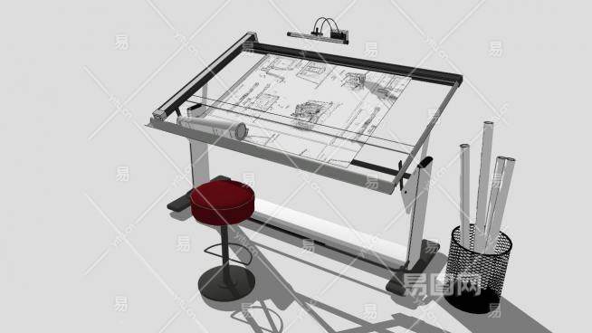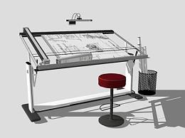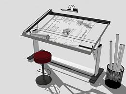 白色设计师绘图桌SU模型下载_sketchup草图大师SKP模型