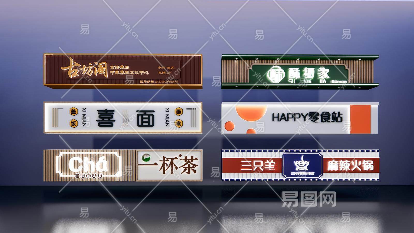 门头广告牌,店招su模型