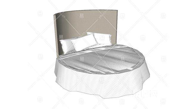 实木板式圆床SU模型下载_sketchup草图大师SKP模型