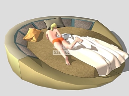 布艺软床圆床SU模型下载_sketchup草图大师SKP模型
