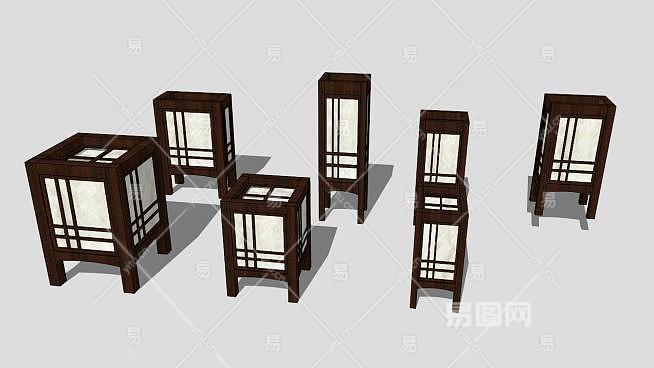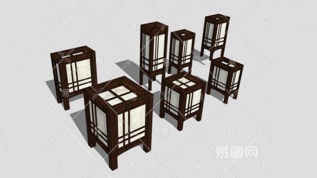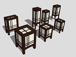 多款日式黑色庭院景观灯SU模型下载_sketchup草图大师SKP模型