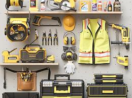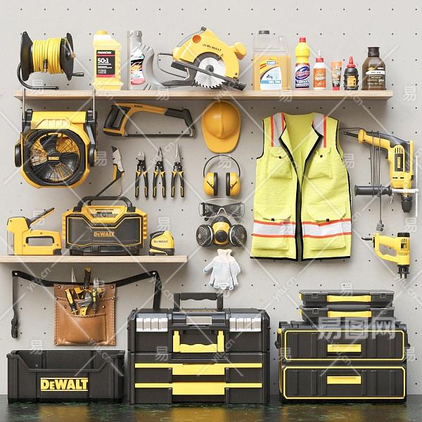 现代工具墙 电锯 防护眼镜防毒面具 五金工具电锤 工具间 工具柜