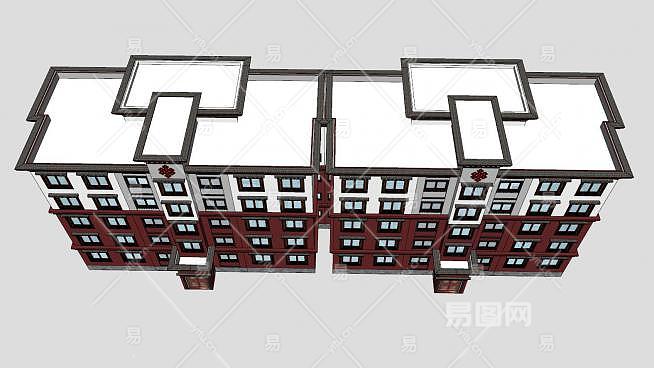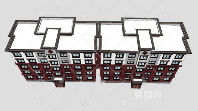 藏式公寓小区楼房建筑SU模型下载_sketchup草图大师SKP模型