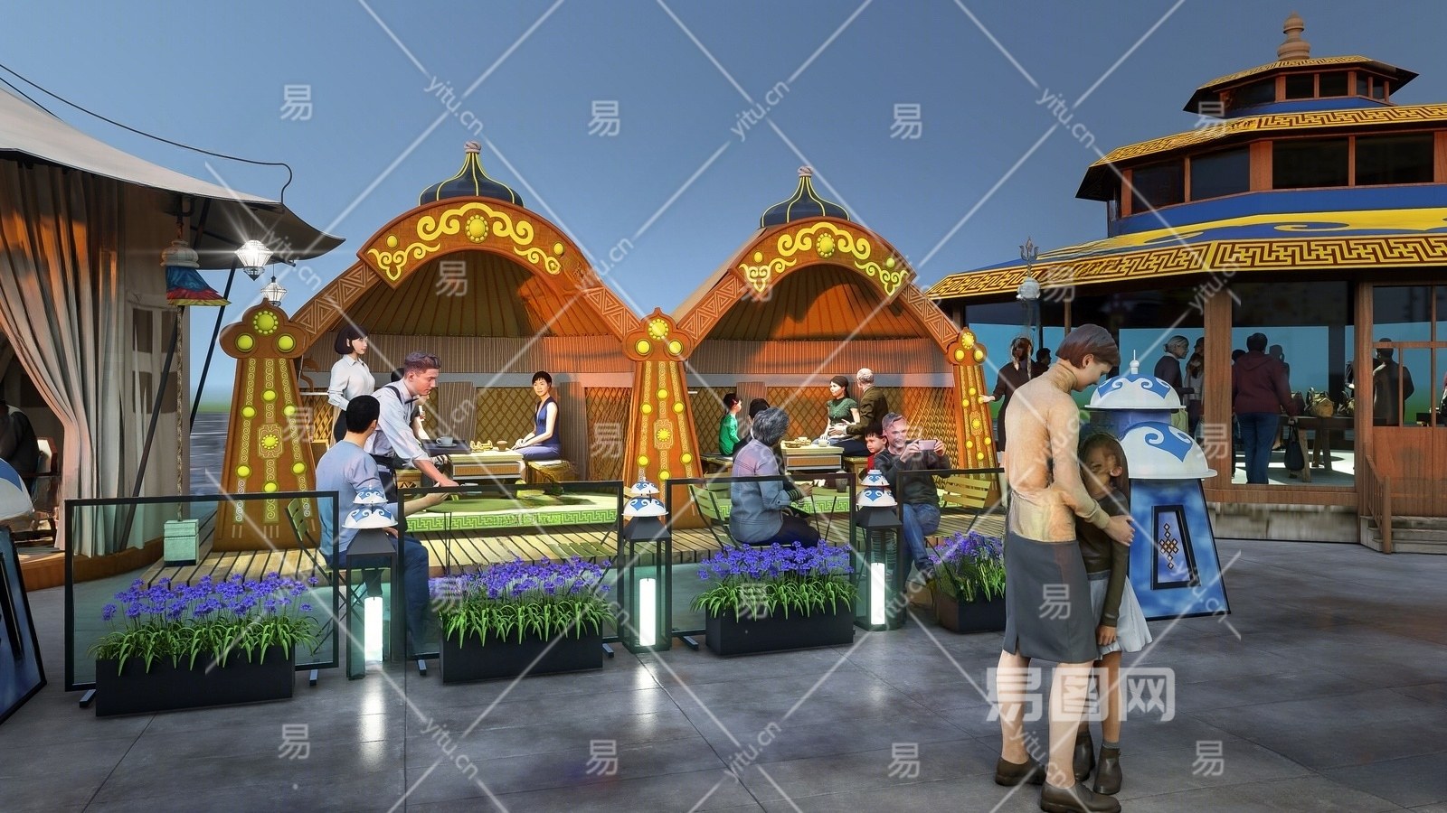 现代蒙古包 蒙古包商业风格建筑改造 蒙古包外摆商业 蒙古商业景观小品