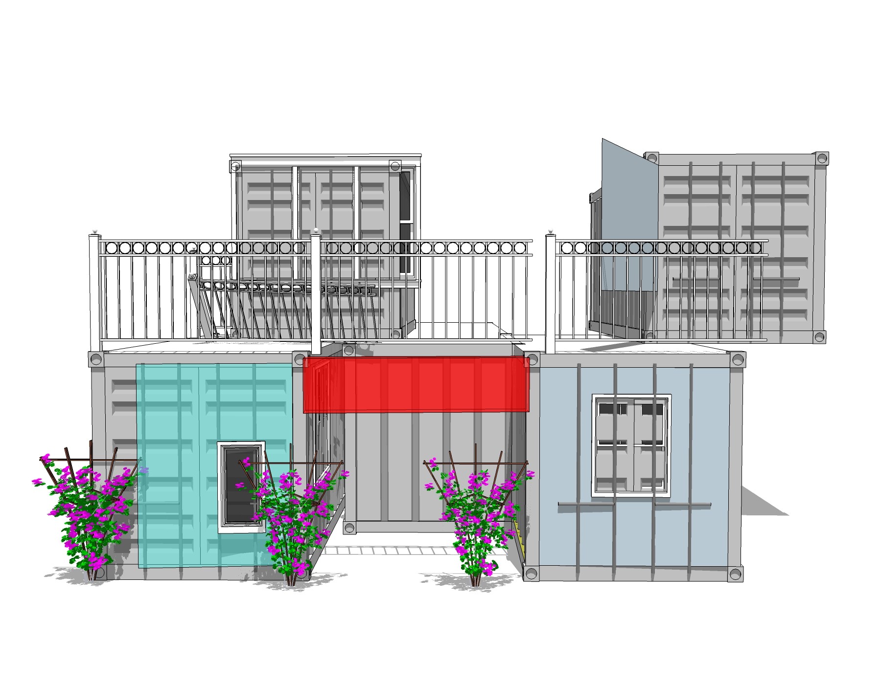 现代集装箱改造房草图大师模型,改造房sketchup模型下载