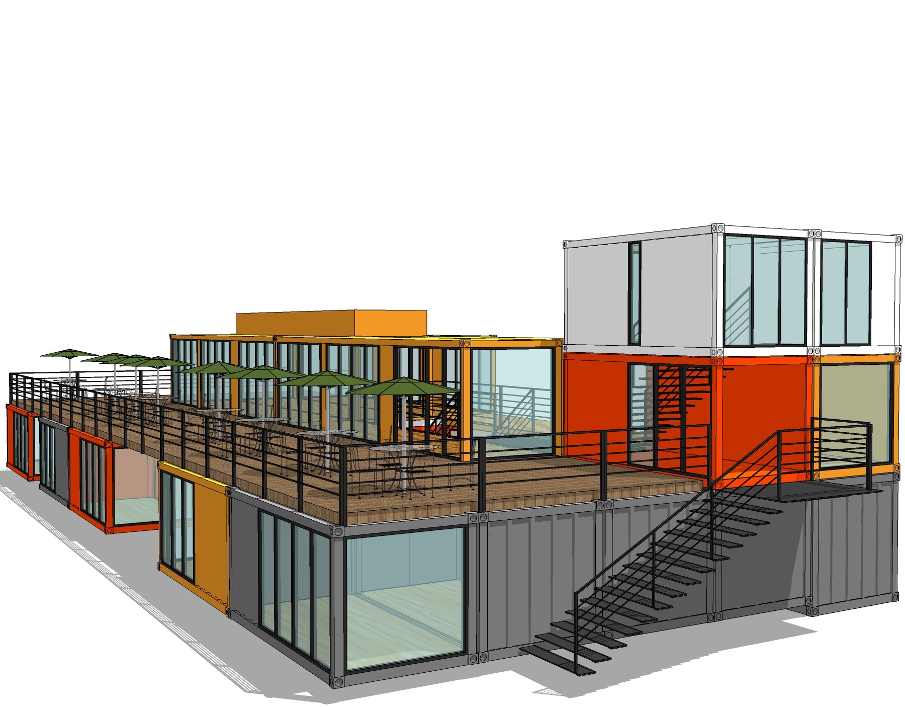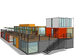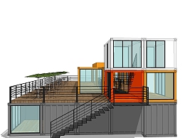 现代集装箱改造房su模型,改造房草图大师模型下载