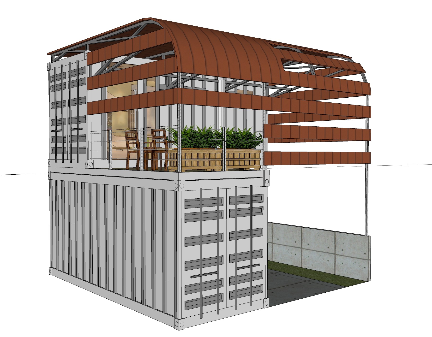 现代集装箱改造房su模型,集装箱住宅草图大师模型下载