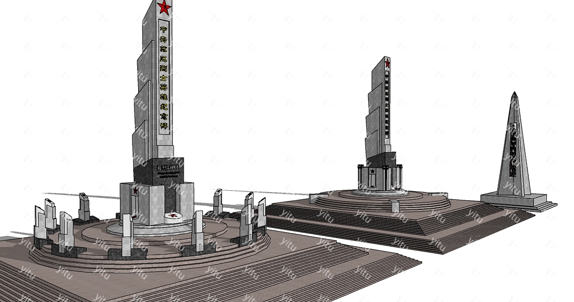 烈士英雄纪念碑SU模型下载,纪念碑skb模型分享