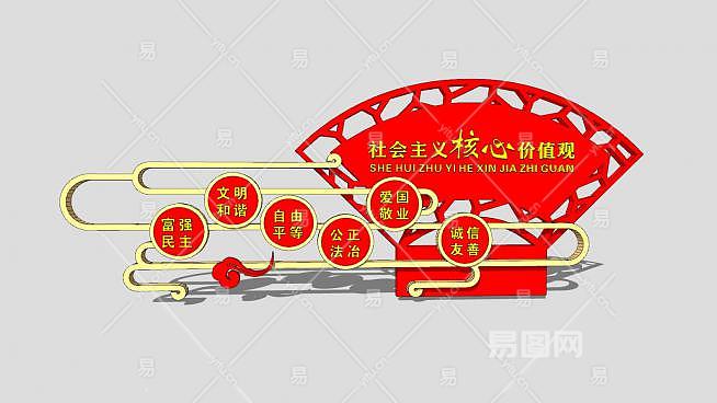 核心价值观党建小品SU模型下载_sketchup草图大师SKP模型