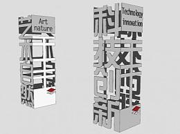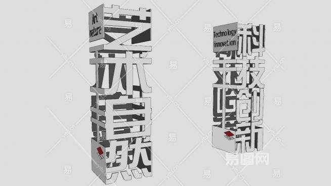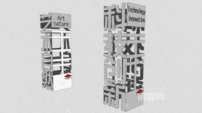 文字文化柱小品SU模型下载_sketchup草图大师SKP模型