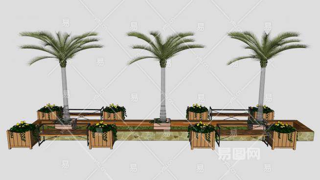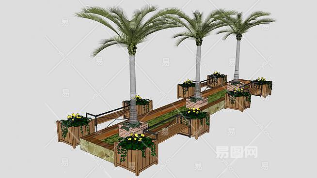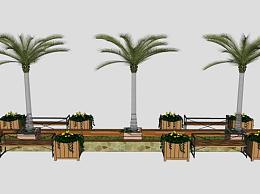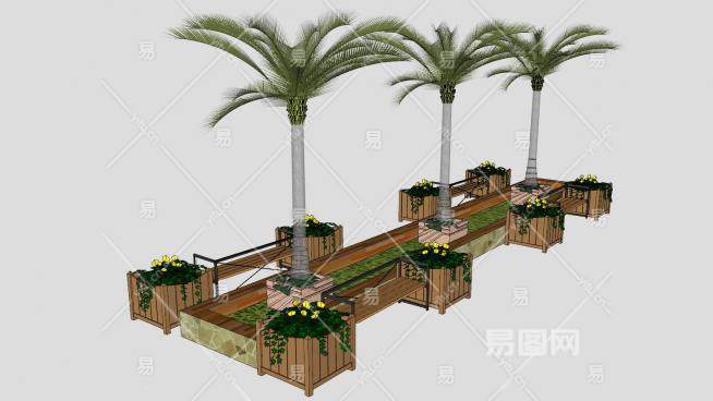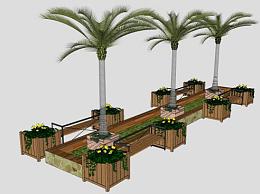 棕树木制花箱树池商业街小品SU模型下载_sketchup草图大师SKP模型