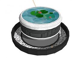 中式庭院小品荷花池SU模型下载_sketchup草图大师SKP模型