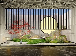 现代新中式风格景观植物小品室内旱景