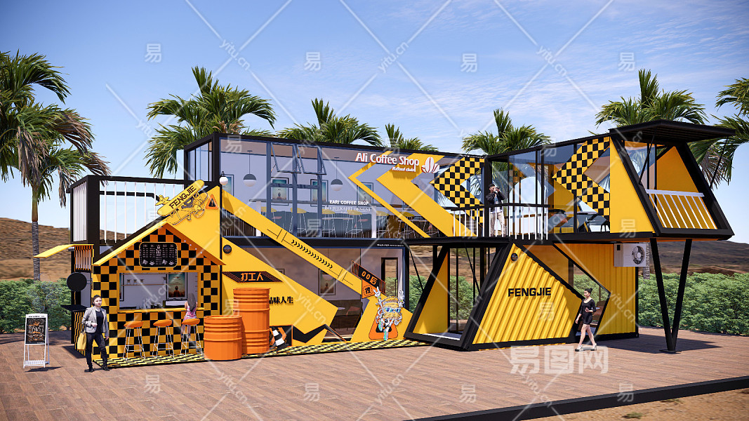 现代集装箱餐饮建筑 酒吧 奶茶店 咖啡厅 售卖亭 店铺铺面