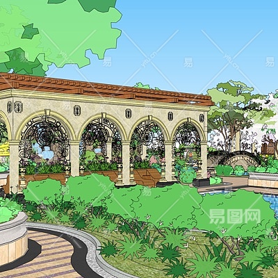 欧式园林景观su模型